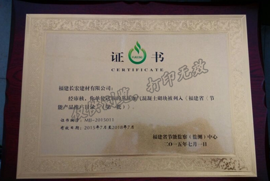 福建省新材辦通過我公司“蒸壓加氣混凝土砌塊”新材產品認定
